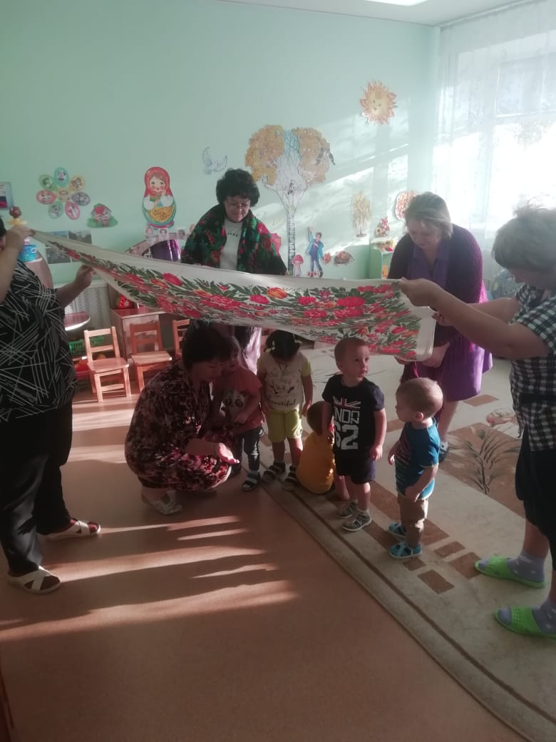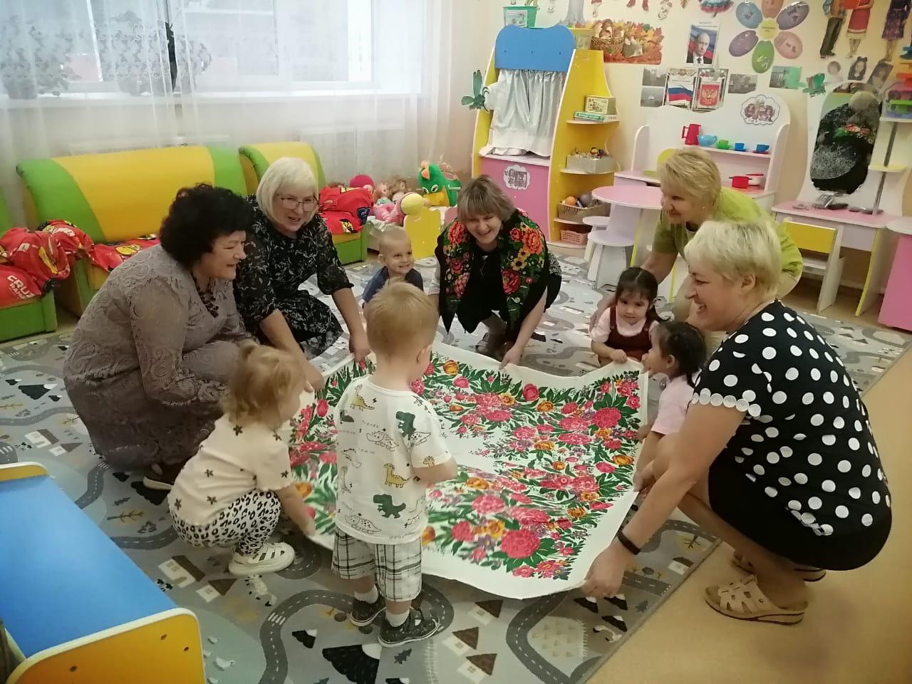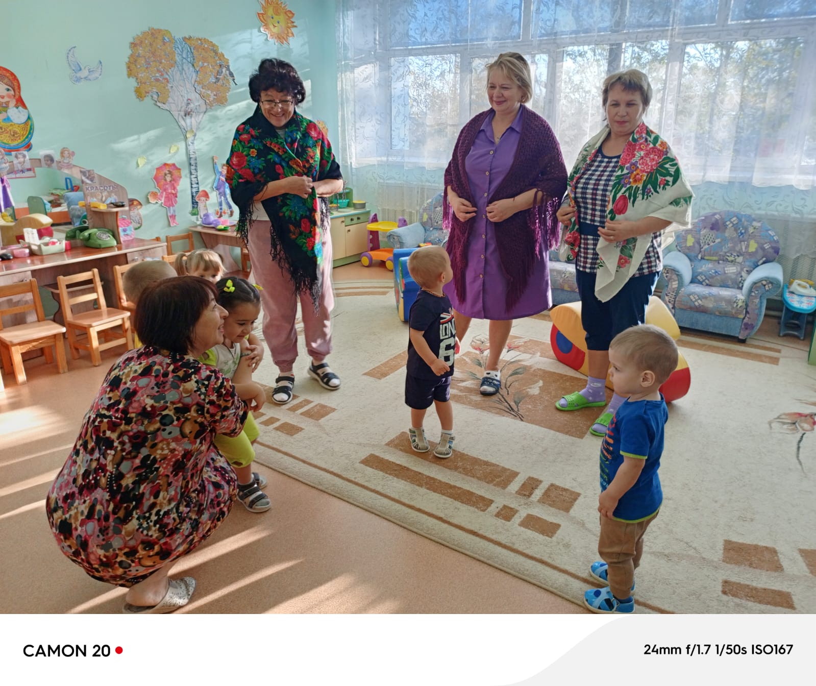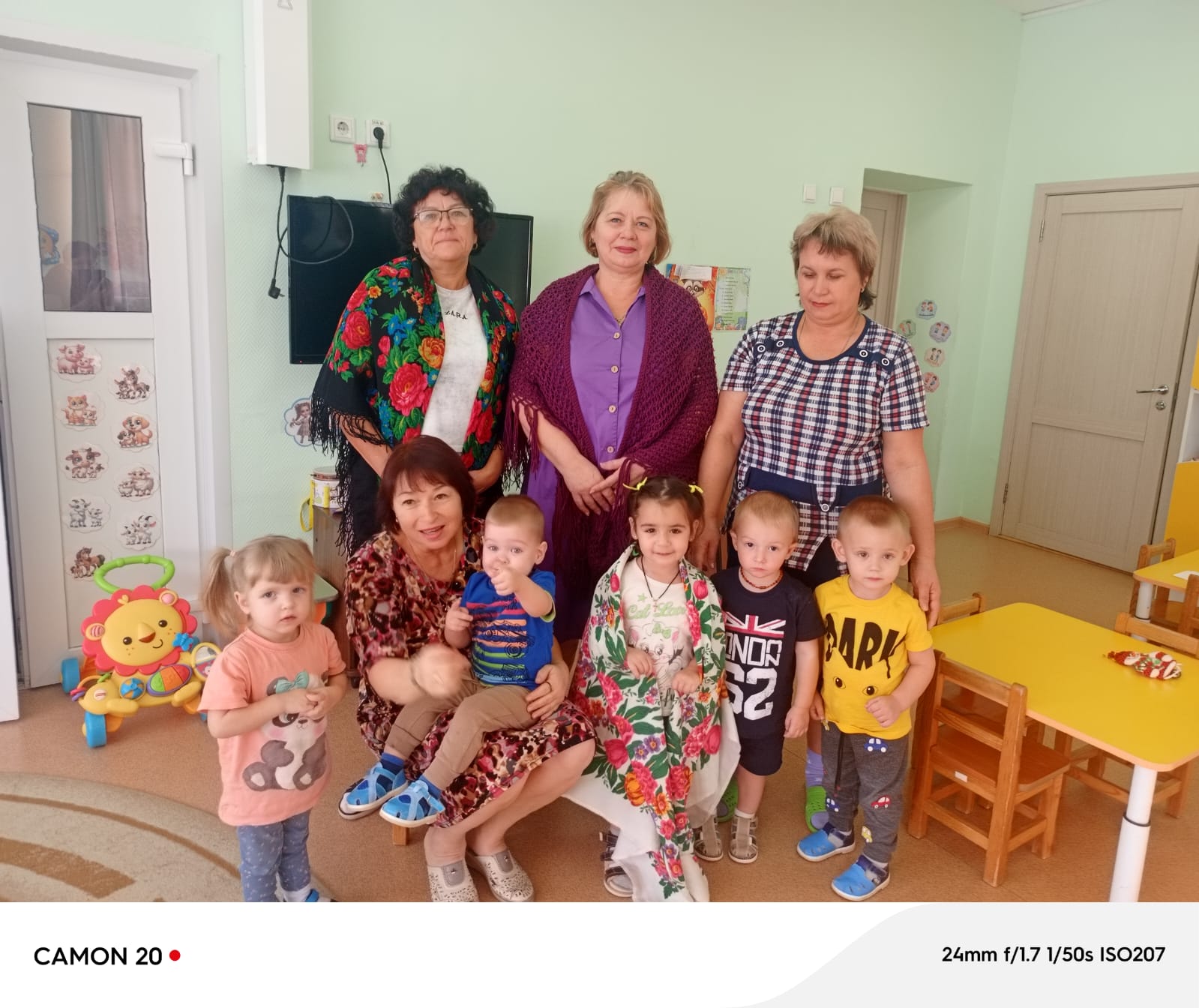 09.10.2025г. в МБДОУ «Детский сад «Сказка» в младших группах «Улыбка» и «Ромашка», состоялось, первое путешествие «Бабушкин платочек». В гости к деткам пришли их бабушки и принесли в корзинке красивые платки, а бабушка Василисы, Наталья Сергеевна принесла платки, которые связала сама.  Дети вместе с воспитателями Мариной Геннадьевной, Еленой Николаевной и Екатериной Васильевной с интересом рассматривали узоры на платках, примеряли их, играли в прятки, в карусель. Встреча очень понравилась и бабушкам, и детям. Бабушки принесли детям не только свои любимые платки, но и угощенье. А дети в свою очередь нарисовали и подарили своим бабушкам красивые платочки. Такие трогательные, тёплые встречи помогают сохранить нить преемственности поколений. Педагоги поблагодарили бабушек за отзывчивость и пригласили их на следующую встречу.