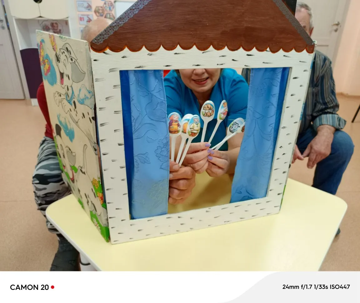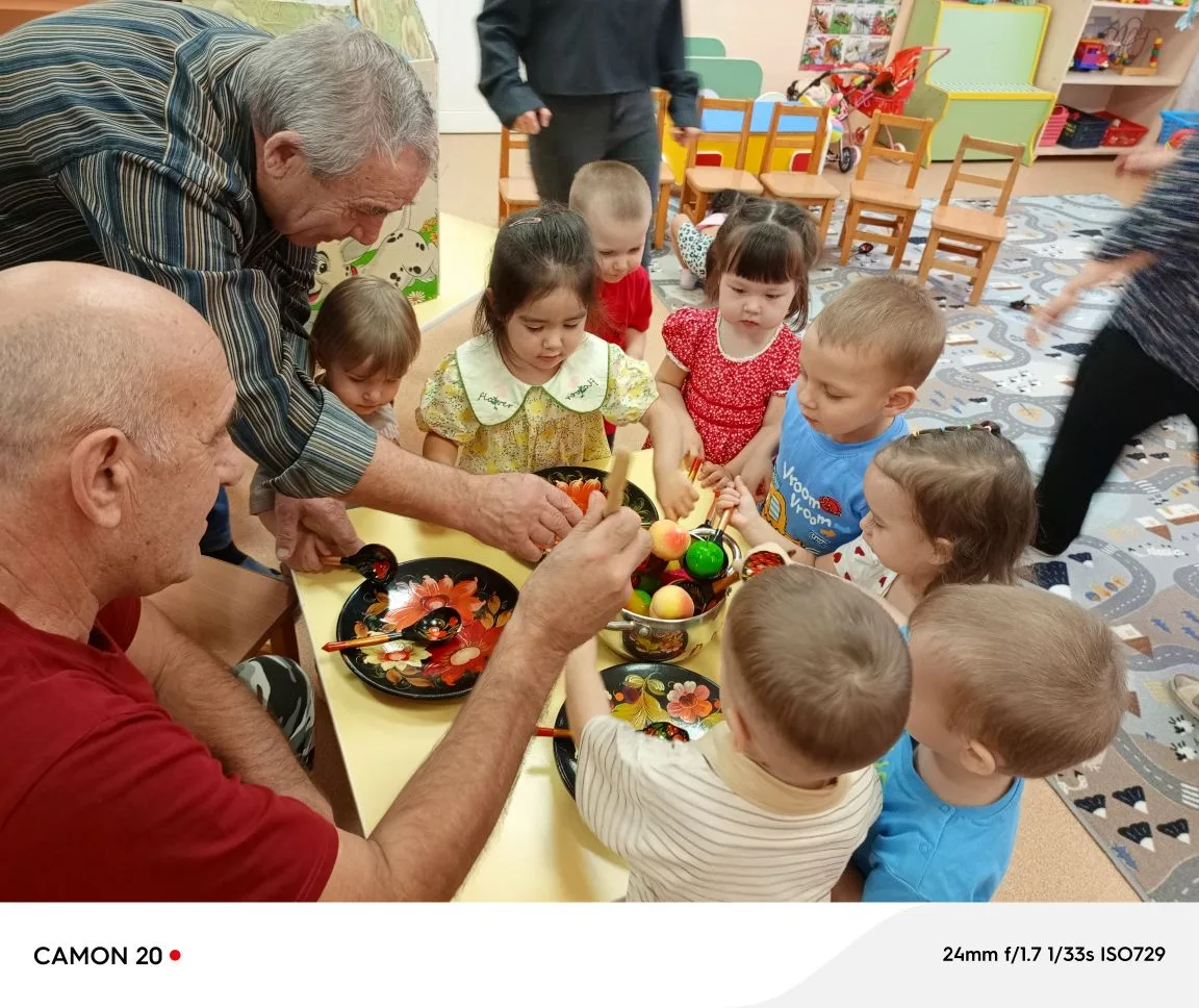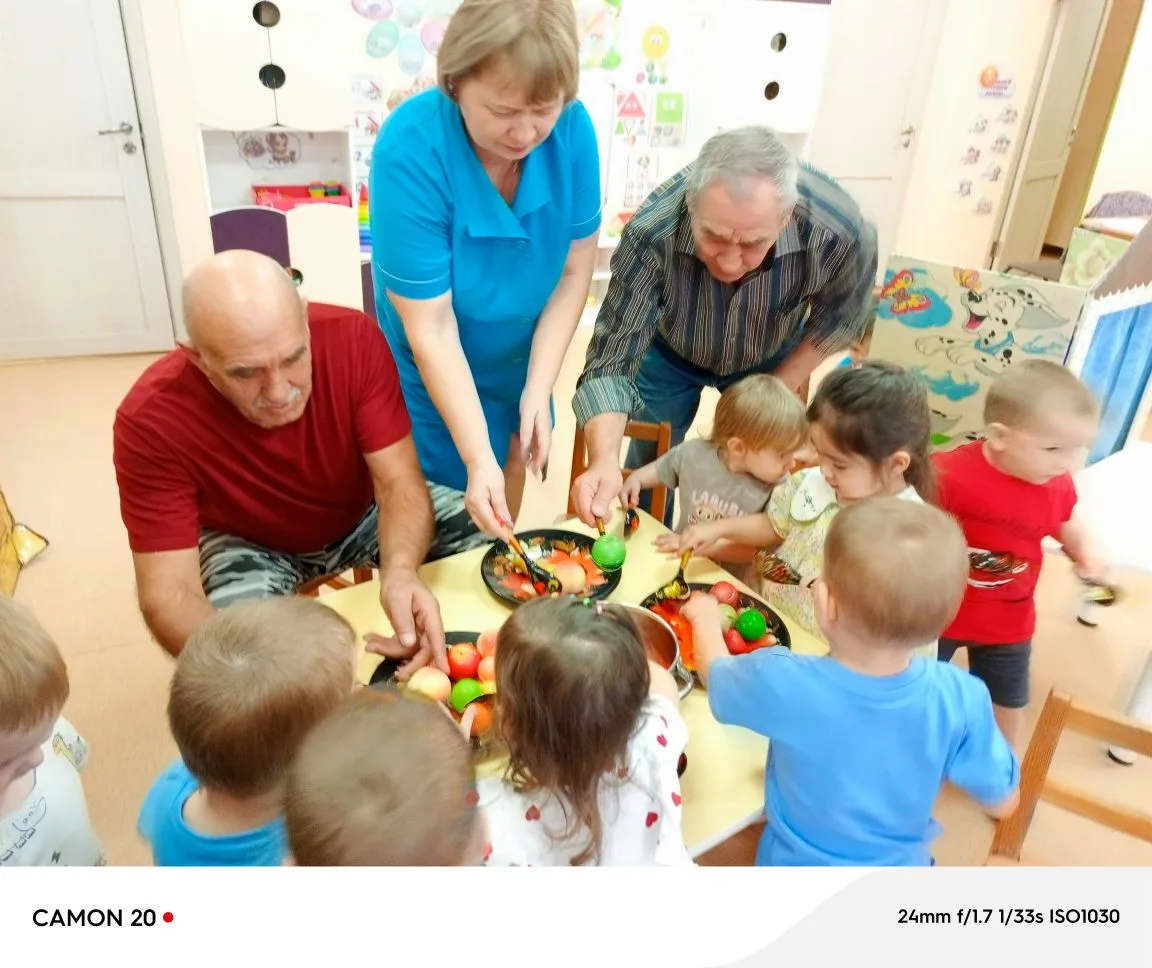 13 ноября состоялось очередное мероприятие «Дедушкина ложка». В гости к детям пришли  дедушки с бабушкой и принесли с собой яркие красивые деревянные ложки. Дедушки рассказали, что этими ложками можно не только кушать, но и играть на них. Показали, как играть на них. Воспитатели с детьми, в свою очередь, показали дедушкам гимнастику с ложками "Жили у бабуси, два весёлых гуся".                                                                                                                                                                                                                                                   Дедушки с бабушкой приготовили детям сказку "Репка", которую ребята смотрели с большим удовольствием.                                                                                                                                     В конце мероприятия все вместе «сварили» компот и отведали его большими красивыми ложками.Таким образом, с помощью тёплых встреч мы  помогаем сохранять нить приеемственности поколений.